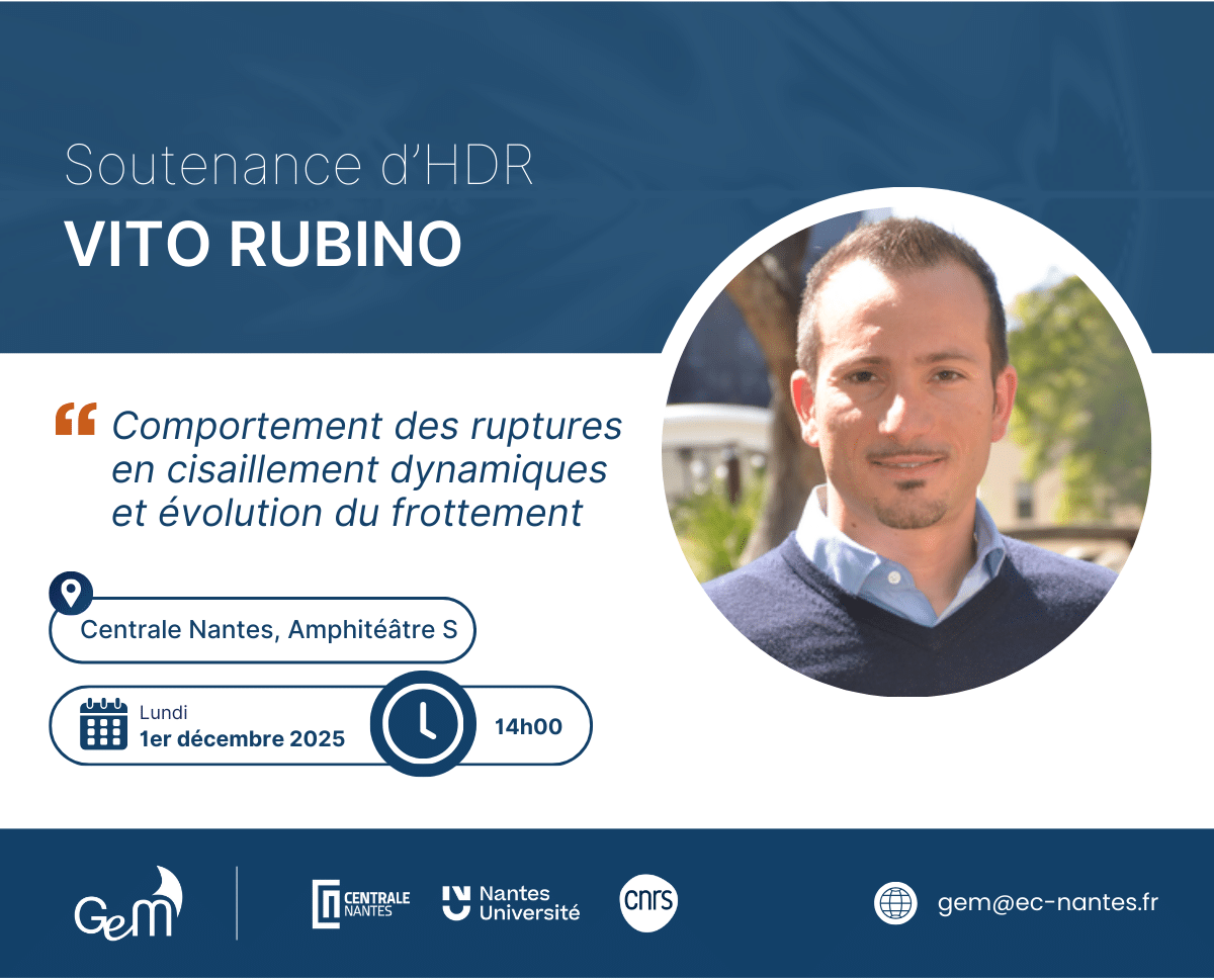 « [Soutenance HDR] Vito Rubino ‘Comportement des ruptures en cisaillement dynamiques et évolution du frottement’